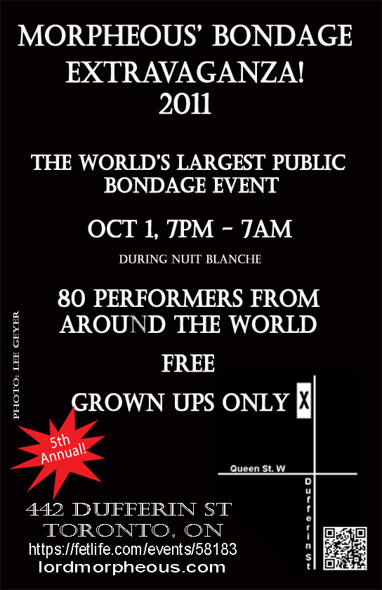 Morpheous’ Bondage Extravaganza on the 1 Oct for Nuit Blanche.